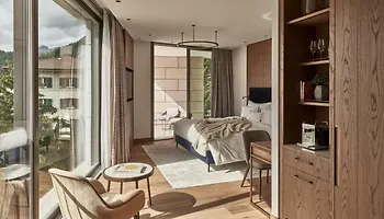 Het Suvretta House Hotel Sankt Moritz met 5 sterren, dat dat autoverhuur aanbiedt, ligt op 25 minuten lopen van het Meer van Sankt Moritz. Dit hotel in Sankt Moritz biedt 150 gastenkamers en voorzieningen zoals een kapsalon en een restaurant.